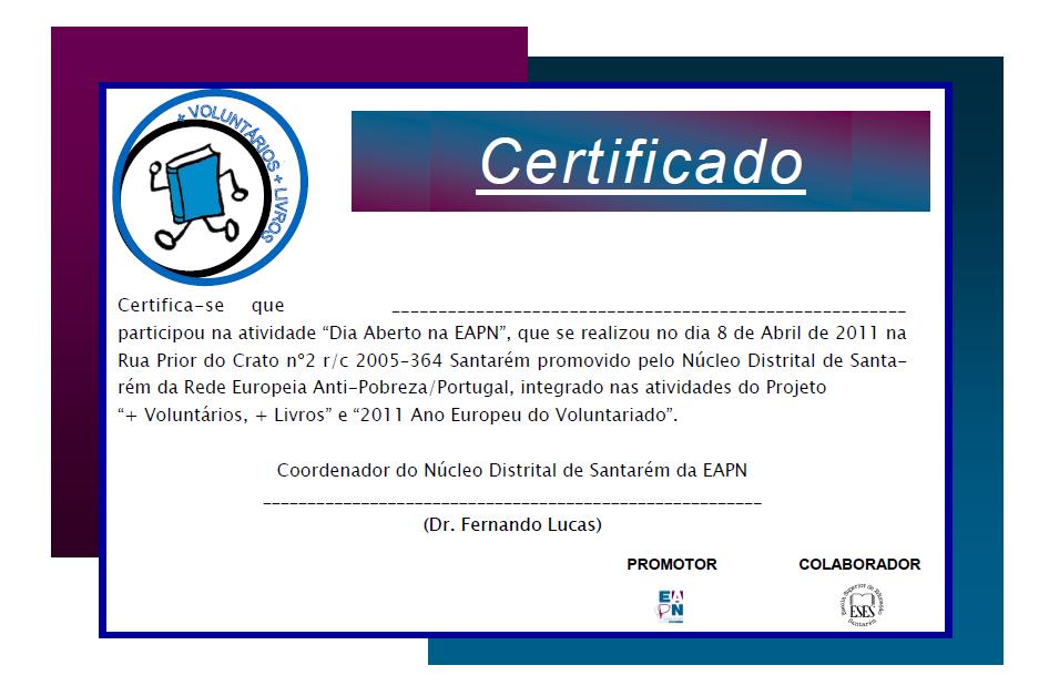 Certificado de participação na Actividade "Dia Aberto na EAPN"