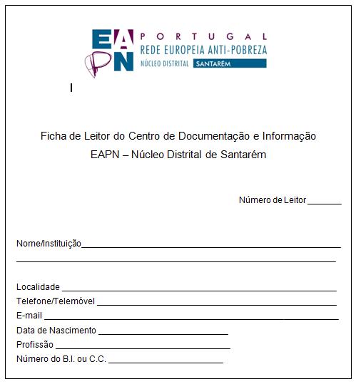 Ficha de Leitor do Centro de Documentação da EAPN do núcleo Distristal de Santarém