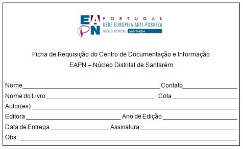 Ficha de Requisição do Centro de Documentação da EAPN do núcleo Distristal de Santarém