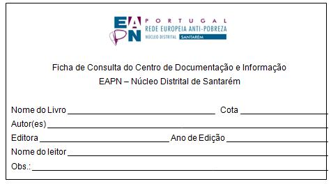 Ficha de Consulta do Centro de Documentação da EAPN do núcleo Distristal de Santarém